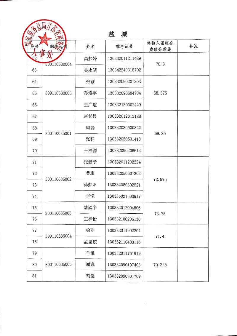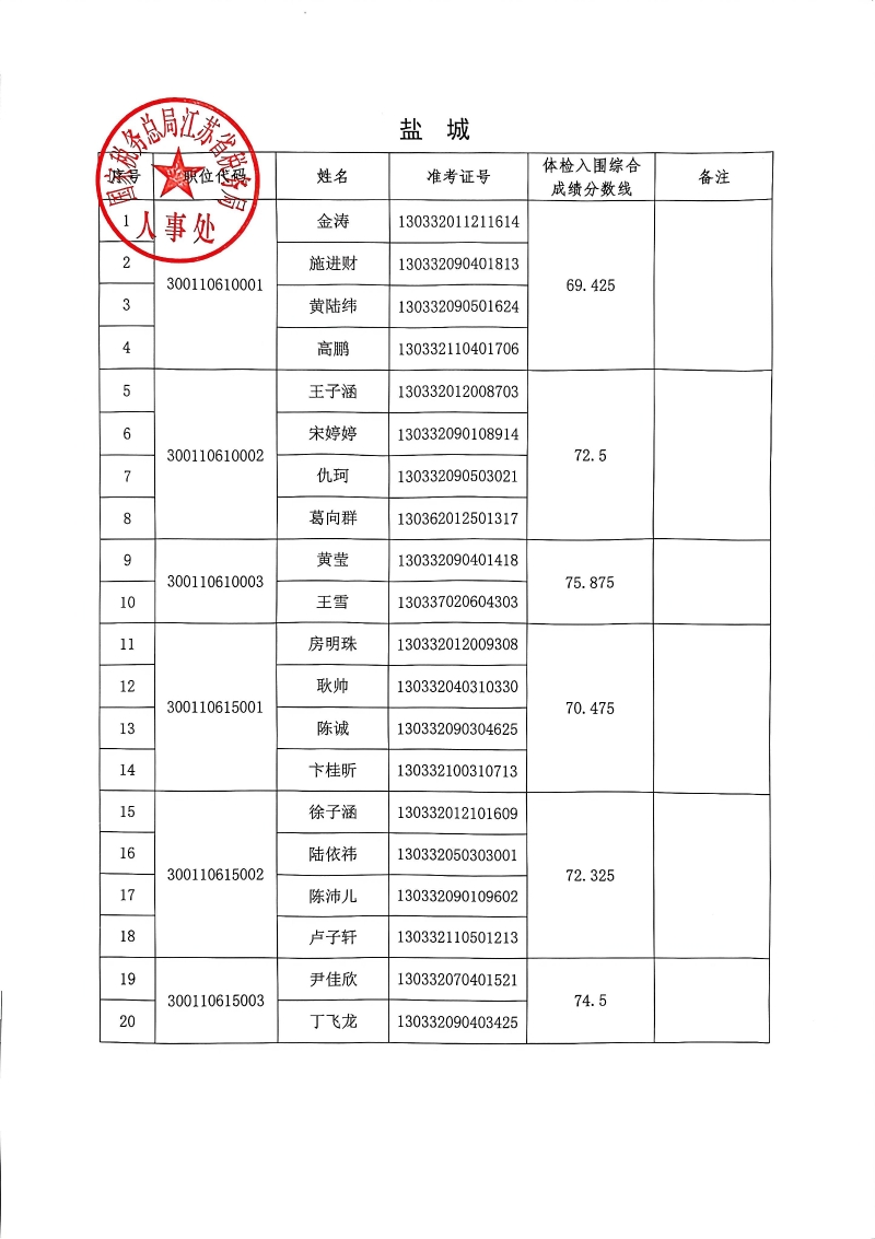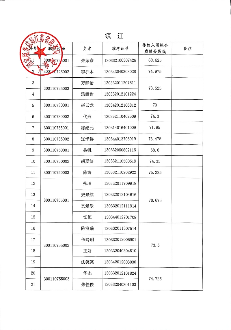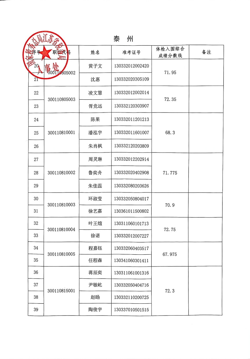 国家税务总局江苏省税务局2026年度考试录用公务员3月17日体检入围人员名单