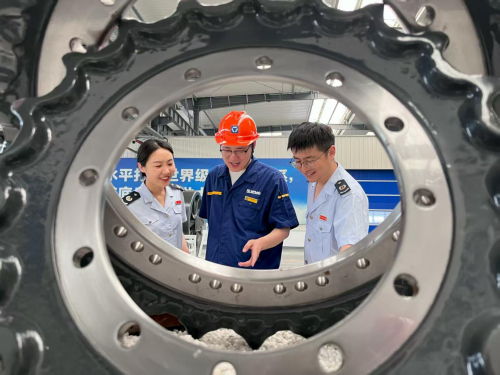 近日,国家税务总局徐州市贾汪区税务局干部走进制造业企业,宣讲先进制造业增值税加计抵减政策。图为徐州徐公履带底盘有限公司工作人员向税务干部介绍公司生产销售情况。