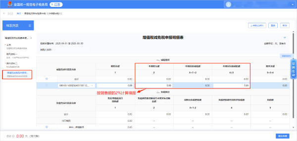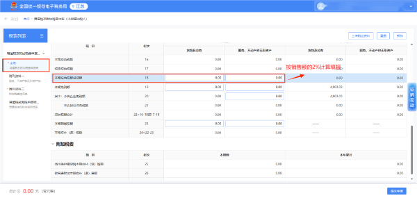 减按1%征收率征收增值税的销售额应填写在《增值税及附加税费申报表(小规模纳税人适用)》“应征增值税不含税销售额(3%征收率)”相应栏次,对应减征的增值税应纳税额按销售额的2%计算填写在《增值税及附加税费申报表(小规模纳税人适用)》“本期应纳税额减征额”及《增值税减免税申报明细表》减税项目相应栏次,减免性质代码应选择01011608。